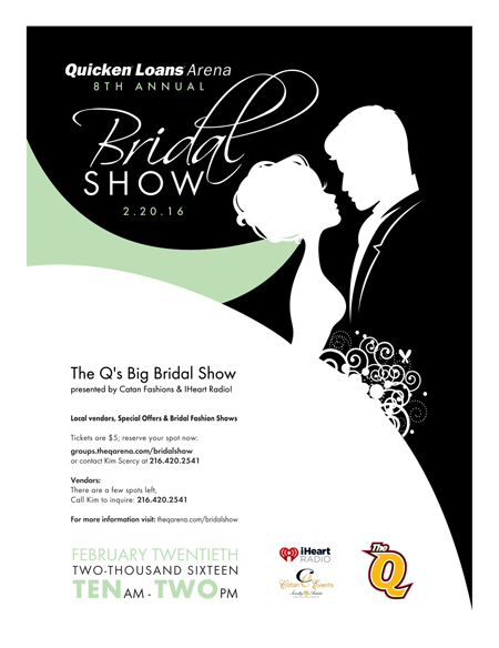 Wedding bells will be ringing as the popular Bridal Show returns to Quicken Loans Arena for its 8th year! Last year's show featured many of Northeast Ohio's top wedding professionals so don't miss the chance to be a part of the 2016 Q Bridal Show!