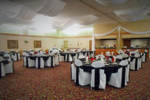 Enjoy having..... an elegant venue that has everything to offer from your choice of colorful linens and fine china to chandeliers and ceiling sweeps. Our entrance lobby with a baby grand piano and large adjoining patio can bring a unique flair to your event.