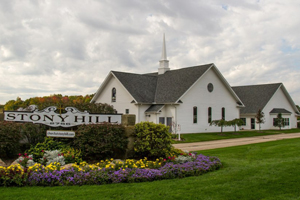 Church at Stony Hill is a charming New England style church facility that provides a comfortable, serene setting for any occasion and the area is perfect for wedding pictures. The building includes a 250-seat sanctuary with a professional sound system, a great banquet room that seats 70 people comfortably and a beautiful, spacious foyer area. The church is located on the corner of Ledge and Stony Hill Road in Medina within easy access to Route 71 and Route 271.